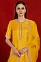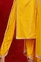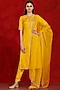 Featuring a yellow straight kurta in cotton base with gota patti embroidery. It is paired with matching churidar pants and a dupatta.
