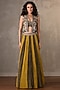 Yellow & Mehendi Green Organza Tissue Crush Panelled Lehenga Set