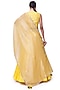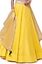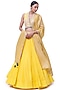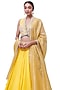 Featuring a yellow lehenga in silk base with embellishments. It is paired with an overlap choli having beads, dabka, pearl and cutdana embellishments and a dupatta. Style it with ethnic dangler earrings and block heels for a festive occasion or haldi ceremonies.
