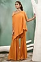 Featuring a marigold yellow one shoulder flowy drape tunic in georgette base with cutdana, sequins, resham and bead hand embroidery. It is paired with flared pants and an inner. Accentuate it with statement earrings and heels for festive occasions or wedding ceremonies.