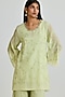 Featuring an aloe green kurta in silk base with sequins, beads and floral thread embroidery. It is paired with viscose organza sharara pants and a cotton slip. Accentuate it with a dupatta and embroidered juttis for a stylish ensemble, perfect for festive functions, family gatherings, wedding celebrations, poojas, and traditional festivities.