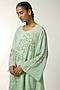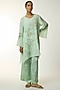 Featuring a blue kurta in silk base with embroidery. It is paired with a cotton slip and satin pants. Accentuate it with minimal jewellery and kolhapuri flats for a festive look, family gathering or pooja ceremony.
