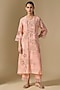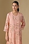 Featuring a blush pink kurta in silk base with sequins, floral, beads and crystal hand embroidery. It is paired with silk pants and a cotton slip. Accentuate it with statement earrings and heels for festive celebrations or family gatherings.