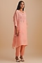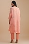 Featuring a blush kurta in viscose organza base with floral applique hand embroidery. It is paired with crepe and organza pants, including a silk slip. Accentuate it with dangler earrings and heels for a festive look.
