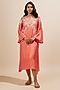 Coral Viscose Silk Applique Floral Beads Embroidered Kurta