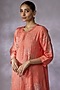 Featuring a coral kurta in viscose silk base with floral embroidery. Style this designer kurta with pants and earrings for a festive look.
