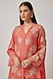Coral Viscose Silk & Silk Organza Embroidered Tunic Set