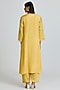 Featuring a daffodil-colored kurta in viscose organza base with sequins, beads and floral thread hand embroidery. It is paired with a cotton slip and silk pants. Accentuate it with minimal jewellery and kolhapuri flats for a festive look, family gathering or pooja ceremony.