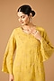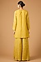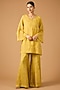 Featuring a daffodil kurta in silk base with sequins, beads and floral hand embroidery. It is paired with viscose organza sharara and a cotton slip. Accentuate it with polki earrings and wedges for festive occasions or haldi ceremony.