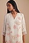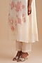 Featuring an ecru kurta in silk and organza base with floral applique, sequins and bead hand embroidery. It is paired with crepe pants and a cotton slip. Accentuate it with dangler earrings and heels for a festive look.
