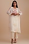 Ecru Viscose Organza Floral Hand Embroidered Kurta Set