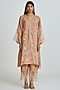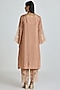 Featuring a gold kurta in silk base with sequins, beads and floral thread hand embroidery. It is paired with a cotton and silk slip, including silk pants. Accentuate it with minimal jewellery and kolhapuri flats for a festive look, family gathering or pooja ceremony.