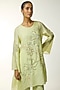 Featuring a green kurta in silk base with embroidery. It is paired with a cotton slip and satin pants. Accentuate it with minimal jewellery and kolhapuri flats for a festive look, family gathering or pooja ceremony.