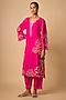 Featuring a hot pink kurta in silk and organza base with crystal, beads and sequins hand embroidery. It is paired with pants. Accentuate it with statement jewellery and heels for a festive occasion, cultural event or sangeet ceremony.