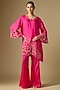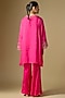 Featuring a hot pink kurta in silk base with hand embroidery. It is paired with sharara. Accentuate it with statement jewellery, a potli bag and embroidered heels for a stylish ensemble, ideal for wedding occasions or vibrant festive celebrations.