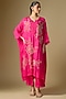 Hot Pink Silk Sequins Floral Embroidered Kaftan Set