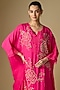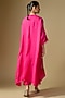 Featuring a hot pink kaftan in silk base with sequins, beads, crystal and floral hand embroidery. It is paired with silk pants and a cotton slip. Accentuate it with statement jewellery, a potli bag and embroidered heels for a stylish ensemble, ideal for wedding occasions or vibrant festive celebrations.