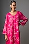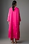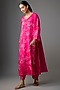Featuring a hot pink kurta in viscose organza base with sequins, bead, floral thread hand and machine embroidery. It is paired with silk pants and cotton slip. Accentuate it with dangler earrings and heels for a festive occasion pooja ceremony.