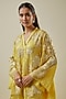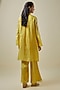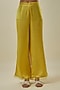Featuring a mango-colored tunic in viscose silk and silk organza base with floral applique embroidery. It is paired with modal satin bell-bottom pants and a viscose silk slip. Accentuate it with statement jewellery and embellished heels for festive occasions or wedding ceremonies.