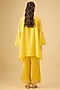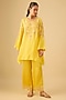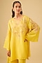 Featuring a mango kurta in silk base with floral applique, crystals, sequins and bead work. It is paired with satin bell bottom pants. Accentuate it with statement earrings and heels for a festive occasion.