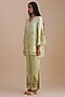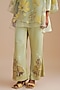 Featuring a mist kurta in silk and organza base with floral applique, sequins and bead hand embroidery. It is paired with satin pants, a silk and cotton slip. Accentuate it with dangler earrings and heels for a festive look.