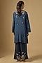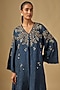 Featuring a navy blue kurta in silk base with sequins, floral, beads and crystal hand embroidery. It is paired with silk pants and a cotton slip. Accentuate it with statement earrings and heels for festive celebrations or family gatherings.