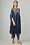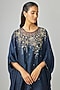 Featuring a navy blue kaftan in silk organza base with floral, sequin, bead and crystal embroidery. It is paired with silk pants. Accentuate it with statement jewellery and heels for a festive look.