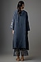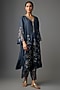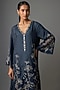 Featuring a navy kurta in silk base with sequins, bead, floral thread hand and machine embroidery. It is paired with silk pants and cotton slip. Accentuate it with dangler earrings and heels for a festive occasion pooja ceremony.