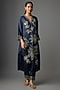 Navy Silk & Organza Floral Embroidered Kurta Set