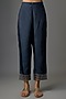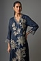 Featuring a navy kurta in silk and organza base with sequins, beads, floral hand and machine embroidery. It is paired with silk pants and cotton slip. Accentuate it with dangler earrings and heels for a festive occasion pooja ceremony.