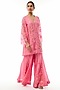 Featuring an orchid pink kurta in silk base with sequins, bead, crystal, floral applique hand and machine embroidery. It is paired with sharara pants. Accentuate it with dangler earrings and heels for a festive occasion pooja ceremony.
