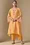 Featuring a papaya orange kurta in silk and organza base with sequins, beads, crystal hand and machine embroidery. It is paired with silk salwar pants, including a cotton and silk slip. Accentuate it with statement earrings and heels for festive celebrations or family gatherings.