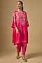 Featuring a pink kurta in silk and organza base with sequins, beads, crystal hand and machine embroidery. It is paired with silk salwar pants, including a silk and cotton slip. Accentuate it with statement earrings and heels for festive celebrations or family gatherings.