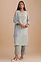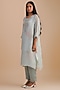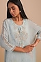Powder Blue Viscose Organza Floral Hand Embroidered Kurta Set
