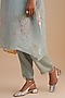 Featuring a powder kurta in viscose organza base with floral applique hand embroidery. It is paired with crepe and organza pants, including a silk slip. Accentuate it with dangler earrings and heels for a festive look.