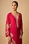Featuring a ruby red kurta in silk and organza base with crystal, beads and sequins hand embroidery. It is paired with pants. Accentuate it with statement jewellery and heels for a festive occasion, cultural event or sangeet ceremony.