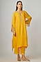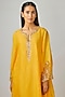 Featuring a saffron kurta in silk base with sequin, bead and crystal embroidery. It is paired with pants and a cotton slip. Accentuate it with statement jewellery and heels for a festive look.
