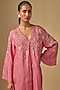 Featuring a salmon pink kurta in silk base with sequins, floral, beads and crystal hand embroidery. It is paired with silk pants and a cotton slip. Accentuate it with statement earrings and heels for festive celebrations or family gatherings.