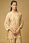 Featuring a shell-colored kurta in silk base with floral, sequin, bead and crystal hand embroidery. It is paired with sharara and a cotton slip. Accentuate it with statement earrings and embellished heels for a stylish ensemble, ideal for festive occasions, family celebrations or special gatherings.