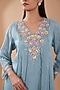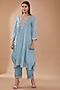 Featuring a steel blue kurta in viscose silk base with 3D floral, sequins and beads work. It is paired with pants and an inner. Style this designer kurta set with dangler earrings and heels for a festive look.