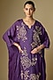 Featuring a violet kaftan in silk base with sequins, beads, crystal and floral hand embroidery. It is paired with silk pants and a cotton slip. Accentuate it with statement jewellery, a potli bag and embroidered heels for a stylish ensemble, ideal for wedding occasions or vibrant festive celebrations.