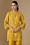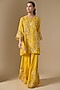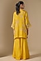 Featuring a yellow kurta in silk and organza base with sequins, beads, crystal hand and machine embroidery. It is paired with sharara pants, including a cotton slip. Accentuate it with statement earrings and heels for festive celebrations or family gatherings.