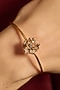 Featuring a 22kt gold plated adjustable floral bracelet studded with white synthetic stones, set in brass. Perfect wear for festive occasions or cocktail parties.