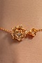 Featuring a 22kt gold plated floral handcrafted bracelet studded with white synthetic stones, set in brass. Perfect wear for festive occasions or cocktail parties.