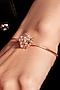Featuring a 22kt rose gold plated floral bracelet studded with white synthetic stones, set in brass. Perfect wear for festive occasions or cocktail parties.