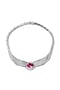 Featuring a white finish handcrafted necklace studded with pink swarovski stones, set in 92.5 sterling silver. Wear this necklace for an enchanting and revered event. Ideal for special and captivating occasions.