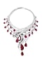 Featuring a white finish handcrafted long necklace studded with red swarovski stones, set in 92.5 sterling silver. Wear this necklace to celebrate love's passionate journey, whether it's a date night or a special anniversary.
