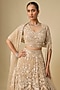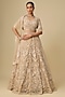 Featuring a beige lehenga net with hand embroidery. It is paired with an embroidered blouse and a dupatta. Accentuate the designer lehenga with statement jewellery and heels for a wedding, engagement or sangeet ceremony.