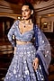 Featuring a cobalt blue lehenga in tulle net and satin base with hand embroidery. It is paired with a blouse and a dupatta. Accentuate the designer lehenga with statement jewellery and heels for a wedding, sangeet ceremony or cocktail soirees.