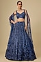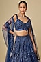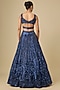 Deep Metallic Navy Blue Net Hand Embroidered Lehenga Set